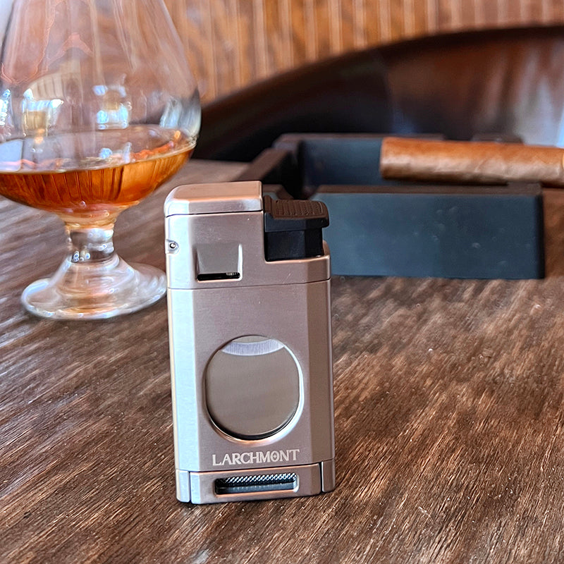 Larchmont Breckenridge Double Torch Windproof butane Lighter with Built-In Punch cutter